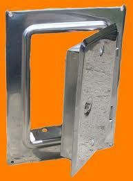 Rozsdamentes acélból készült hõszigetelt füstgáztömítéssel rendelkezõ kéménytisztító ajtó. Az elõlap mérete: 20,5 x 25,5 cm, az ajtónyílás mérete 12 x 18 cm. A hagyományos beton kéményajtók nyílásába illeszkedik.
